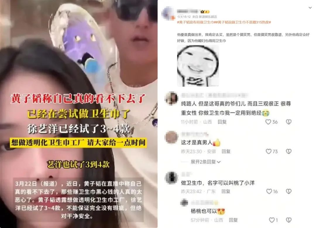 黄子韬要做卫生巾,网友纷纷称赞。 来源:网络