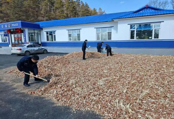 尽管已经是春天了,但是林地的温度仍然很低,居民们需要储备足够的暖气来应对春寒。但是很多居民家里的玉米芯不能及时晾干,因为没有合适的地方。如果潮湿,不仅会影响加热效果,还会滋生霉菌,不能正常使用。在日常走访中,刁凌派出所民警了解到困扰居民的问题。考虑到派出所院中场地宽敞,光线充足,经协商,决定开放派出所大院,为居民提供干玉米芯的场地。