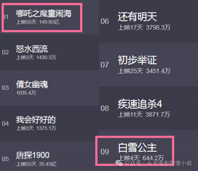 在中国大陆上映的《白雪公主》 3 天空的票房也只是过去了 600 万,被“哪吒” 二是远远落后,在票房榜上根本排不上前列。