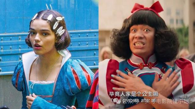 有网友将这位白雪公主与电影《新喜剧之王》中王宝强反串的白雪公主进行了比较,认为这位白雪公主“不如宝强”。