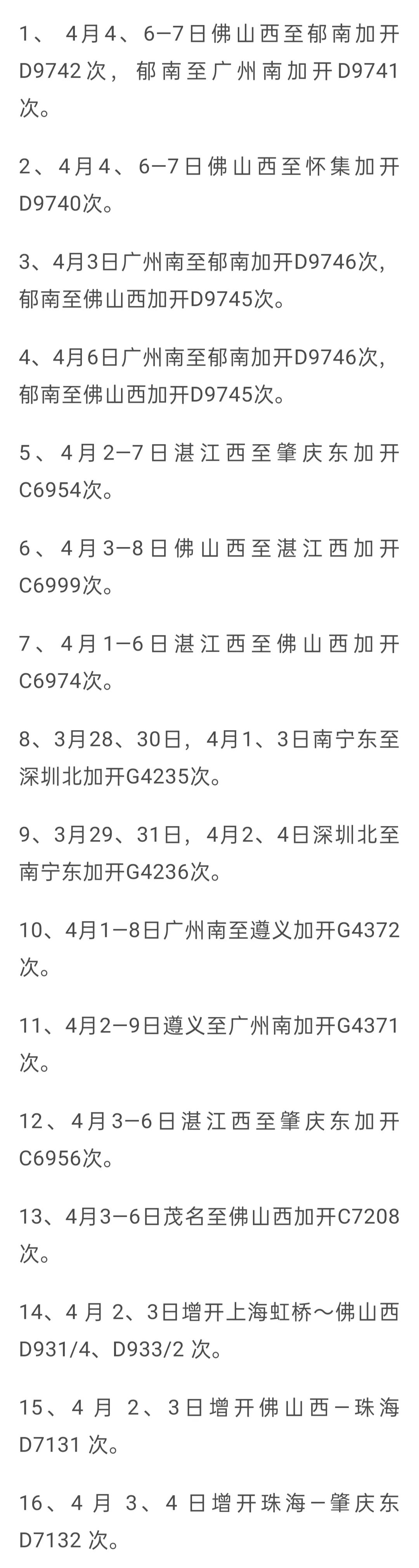 为了满足2025年清明小长假期间旅客的短途扫墓和郊游需求,佛山西站将增加列车,确保市民出行。(来源:佛山 )