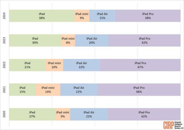然而,根据美国过去五年的市场数据,iPad Pro 系列占 iPad 总销量的 38%-48%,远远超过其它型号。iPhone 和 Mac 同样呈现产品线 " 越高越卖 " 趋势,顶配型号以收入为主,支撑苹果 38% 上述毛利率。IT 这个家庭附有以下相关图片: