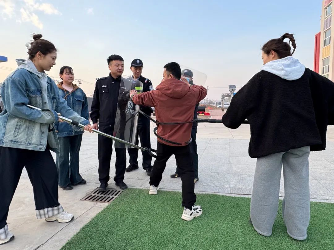 在现场,警方首先向幼儿园教职员工和保安人员说明了常见防爆设备的种类和用途。对于每一种设备,警方都进行了现场演示,每一个动作都认真细致地讲解了从握姿、发力技巧到防御和攻击的时机。警方强调,面对突发恶性事件,规范使用防爆设备不仅可以有效保护师生安全,还可以为警方的后续处理争取宝贵的时间。