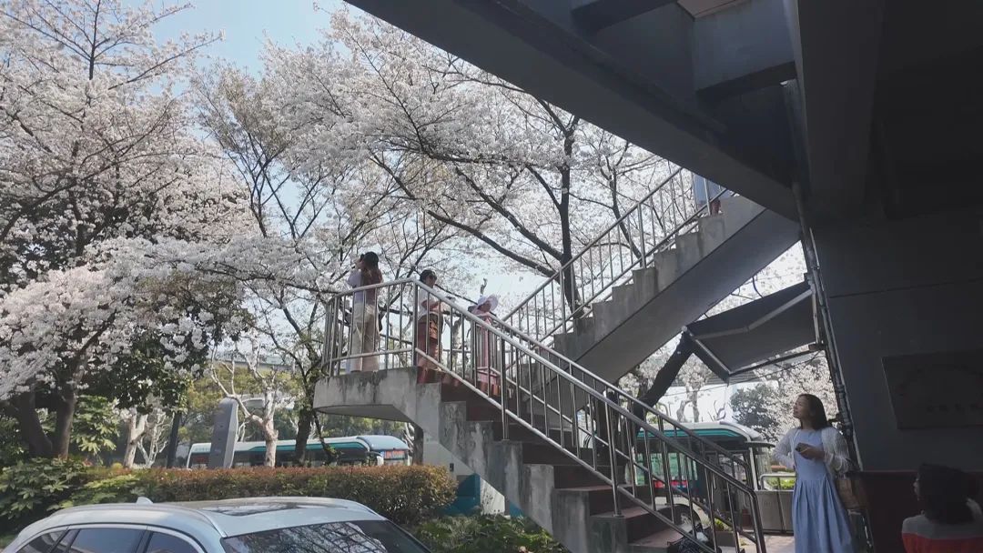 “太美了!‘最美的公交车站’真的名副其实。”一位市民兴奋地说。另一位市民也很惊讶:“今年的樱花相当漂亮,旁边的风景非常适合拍照。”
