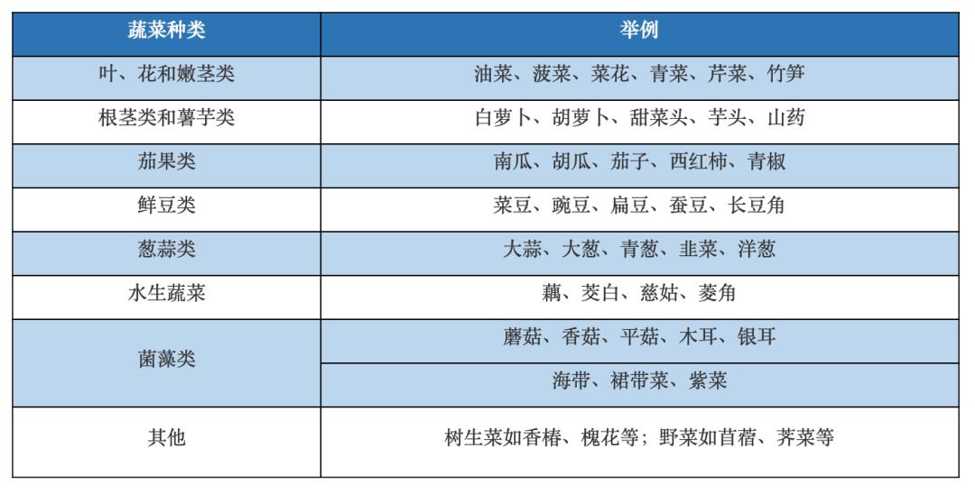 常见的蔬菜类型。图片来自中国营养学会官网⑤