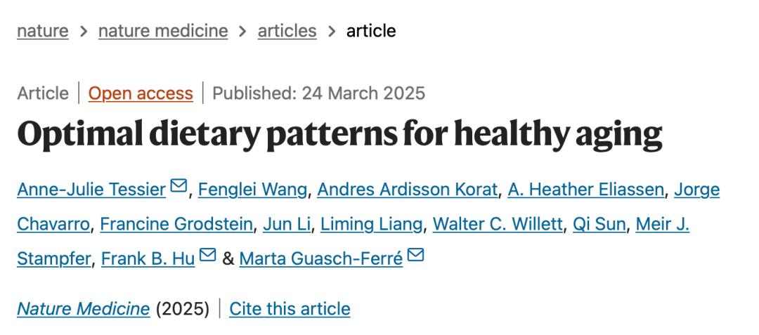 ①Optimal dietary patterns for healthy aging. Nat Med (2025). https://doi.org/10.1038/s41591-025-03570-5