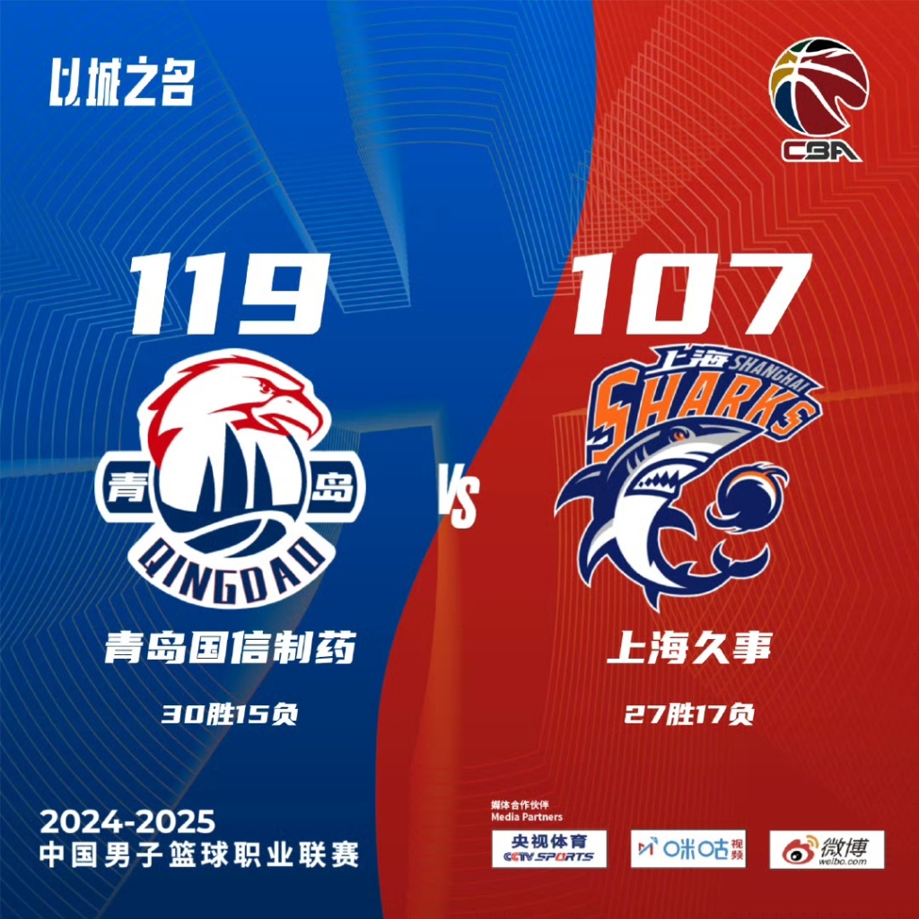 下半场,青岛打出10-2,直接超越比分。双方继续对抗,青岛多点开花,保持微弱领先。转折点发生在洛夫顿被驱逐了两个T,青岛第三节打出41分,超过5分。上海最后一节突然断电,青岛9-0领先双位数。然后青岛牢牢抓住主导权,最后119-107击败上海,连续5场胜利。