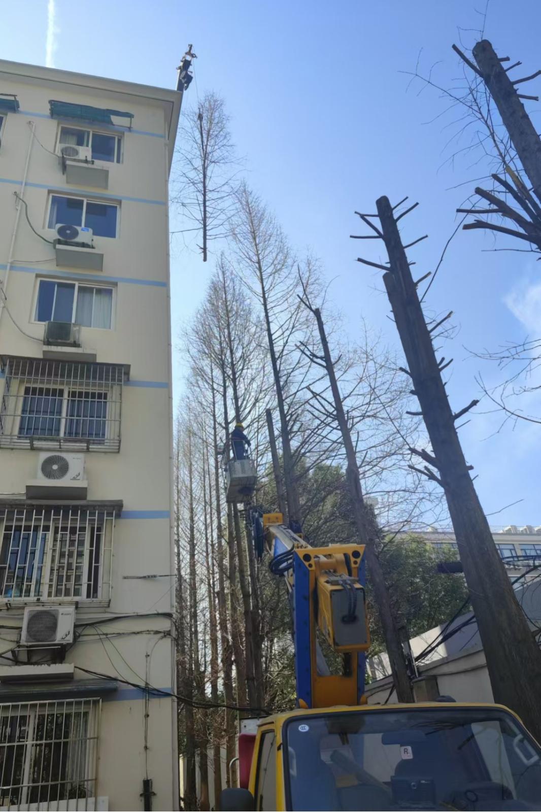 在过去的两天里,80多棵长势凌乱的树木褪去了凌乱的“旧衣服”,修剪了影响采光的高大树木,修剪了高压线旁茂盛的树枝,有效改善了社区环境,消除了安全隐患。