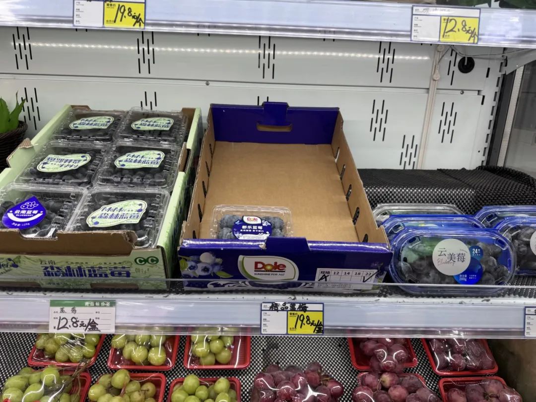 新闸路一家水果店的工作人员透露:“一个月前蓝莓挺便宜的,但是最近买的时候,蓝莓的价格一次比一次高。一个月前,云南有一个蓝莓水果。我们的价格是每盒30元,但现在我们的价格是每盒32元。”