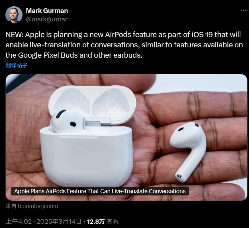 是的,这次也要来了!根据爆料,iOS 19将为AirPods增加一个“同声翻译”功能。