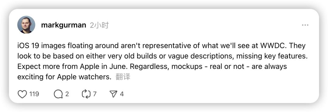 对此类变化,资深苹果爆料家马克·古尔曼表示,尽管现在外部曝光的iOS 19谍照不一定是数数,但是他可以肯定,iOS 19外观“大致基于”Vision Pro界面。