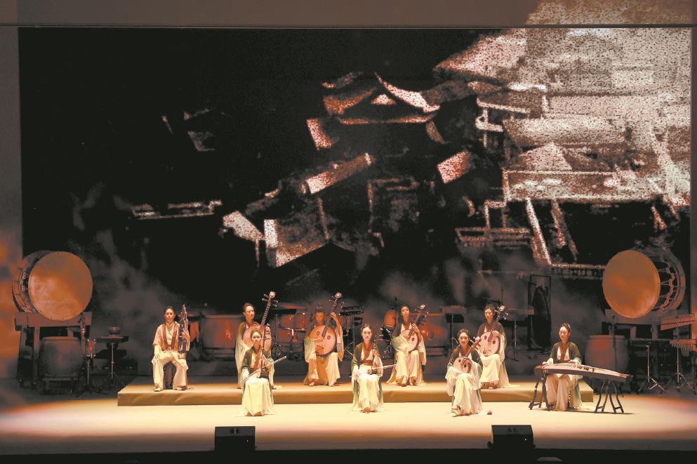 记者在《南韵国色》现场感受到,传统的南音意义悠长,带有简约。当四宝、响板等常用乐器与民族室内乐团形成交响时,鼓点和音韵瞬间变得温暖起来。演出现场还辅以多媒体场景制作。在AI的帮助下,南音独特的乐谱被转化为视觉图案,并巧妙地将其与闽南的屋檐和角落建筑元素相结合,构建了历史与地域特色并存的舞台背景。“光影蒙太奇的叙述可以帮助诗意的音乐进一步表达自己的感受,使其具有更强的舞台表现力,让观众享受身临其境的视听。”代晓蓉说。