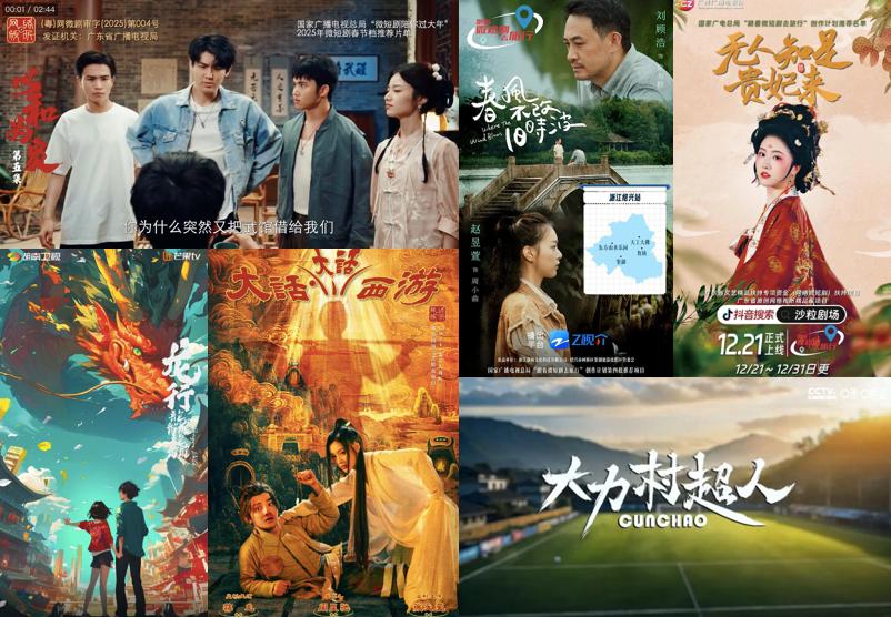 背靠着各大卫视试水短剧的热潮,短剧上星越来越正常。据初步统计,2024年有30多部短剧成功上星,其中不少微短剧在当地电视收视率上创下榜首。2025年春节期间,微短剧推荐片单首次增强了14个推荐曲目,如《龙行》《西游》《春风不改旧波》《无人知晓是贵妃来》《以和为贵》《大力村超人》等。