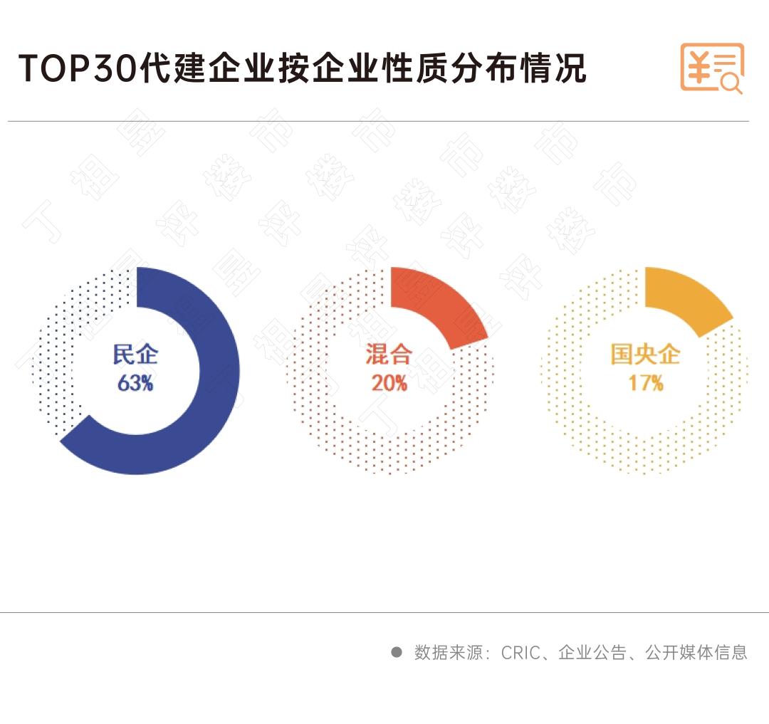 三是民营代建公司仍然是主流。就TOP30上榜代建企业的性质而言,民营企业是完全主流的,占63%;国有企业中央企业占17%。值得注意的是,中央国有企业和混合所有制企业在头部TOP5企业中所占比例较高。