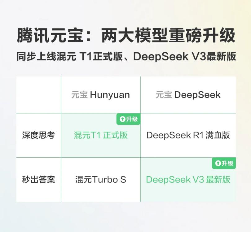 新推出的腾讯混元T1模型也有这样的特点。DeepSeek的V3-0324和自研混元T1于26日同步接入元宝。