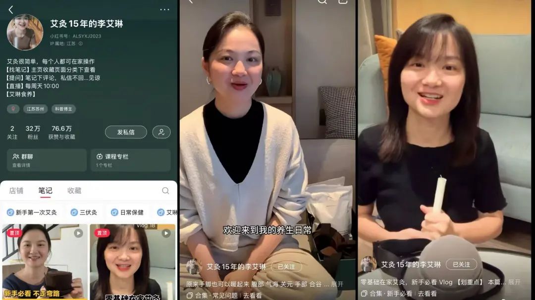 在他发布的视频笔记中,长相好、精力充沛的李艾琳不仅会出现讲解艾灸的理论知识,还会详细演示相应的艾灸操作方法。因为内容全面,理论与实践兼顾,人很有说服力,李艾琳在小红书上已经吸了32W粉。