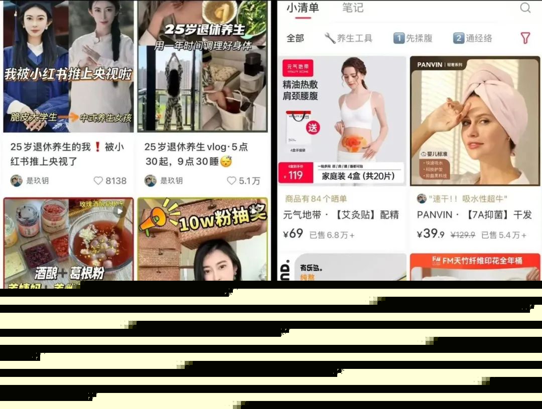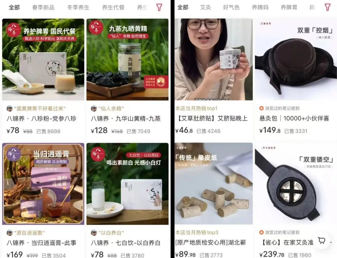 由明星创业到业余博主,从线下养生馆的火爆到线上相关内容的爆发,从艾炙到八段锦,从养生茶到泡脚包,近年来,曾被视为“老派”和“老年人专属”的中国健康正以全新的姿态站在风口浪尖,收获从年轻人到中老年客户的用户群体。尤其在小红书、抖音等平台上,一场以“中式养生”为名的流量飓风正以毁灭之势蔓延: