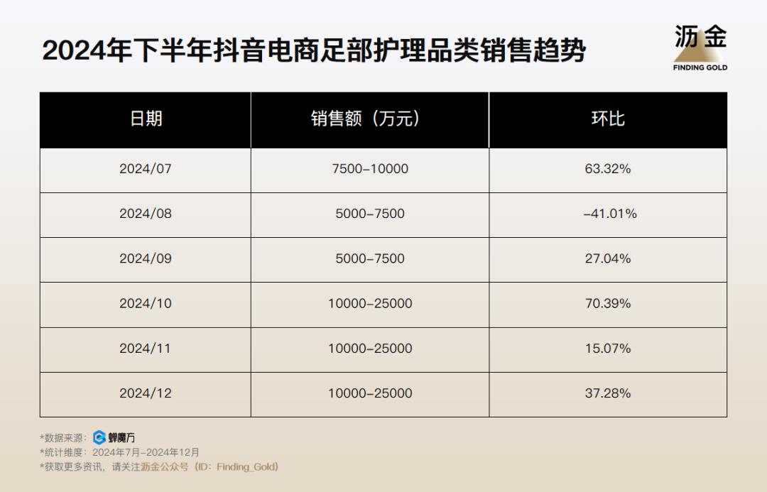 从抖音电商的角度来看,足部护理品类的销售额在短短几个月内几乎翻了一番,尤其是10月份,比火箭点火70%。双十一备货潮完全爆炸跑道,年底三个月稳定1亿元俱乐部。