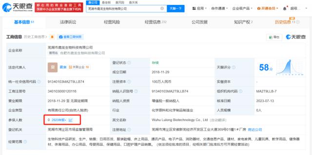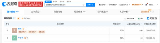 据天眼查 App 显示,安徽鹿妈妈生物科技有限公司成立于小鹿妈妈关联公司 2016 年 5 月亮,法定代表人是岳梦影,注册资本 500 万人民币,经营范围包括生物技术产品的研发、生产、销售等,由夏泉、芦士琴各持有 90%、10%。2023 年报数据显示,公司参保人数为 1 人。