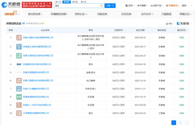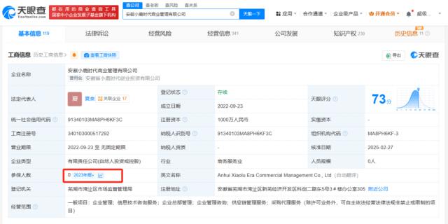 业务简历数据显示,小鹿妈妈创始人夏泉名下的关联 18 家庭企业,其中 14 家为生存状态,包括安徽小鹿时代商业管理有限公司、安徽喜家商业管理有限公司、芜湖小鹿妈妈生物科技有限公司等。夏泉担任股东、法定代表人、执行董事、总经理等职务。值得注意的是,安徽小鹿时代商业管理有限公司、安徽吉鹿智能科技有限公司、芜湖鹿龙生物科技有限公司等多家公司。 2023 年报显示,所有参保人数均为 0 人。