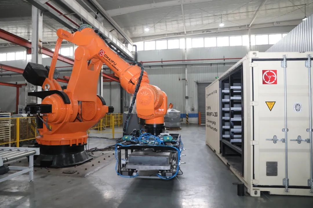 他说:“这是我们最近开发的ClusterPack。⊃2;X集装箱储能电池包入簇工作站,不仅可以提高生产效率,还可以保证装配精度,减少人为偏差,提高系统稳定性。”柴孚机器人有限公司总经理陶才江说。