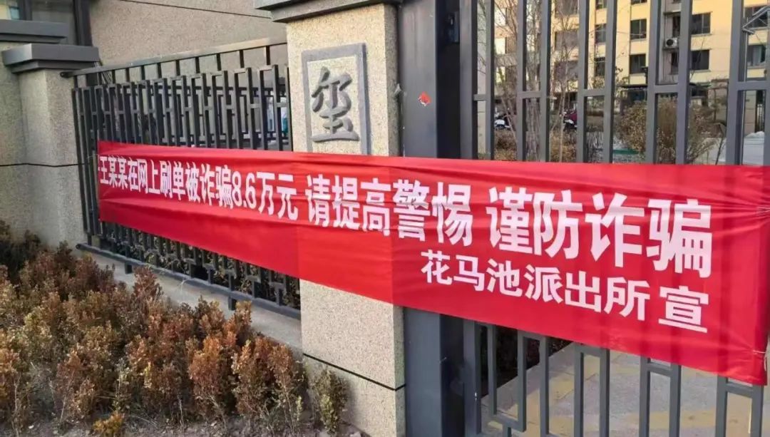 “这个社区的孩子在玩游戏的时候被骗子骗了10多万元。请管理好面部识别、密码支付等功能。”花马池派出所还根据真实案例“量身定制”了反诈骗横幅,悬挂在显眼的位置,提醒大家保持警惕。