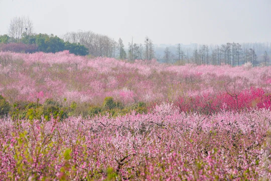 从市中心开车,沿着长江西路一路向西行驶,30多分钟就能到达100亩粉色花海。走进桃源,仿佛进入了一个奇幻的世界。满山的桃花灿烂,形成了一片粉红色的海洋。