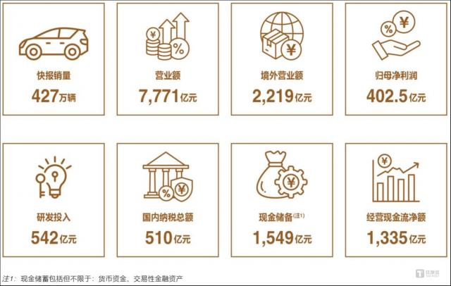 在这些业务中,汽车及相关业务贡献收入 6173.82 亿元,同比增长 占比接近80%的27.7%;属于母公司的净利润是 402.5 亿元,同比增长 每股收益达到34% 13.84 人民币。毛利率和净利率分别上升到 19.44% 和 5.35%,盈利能力持续提升。