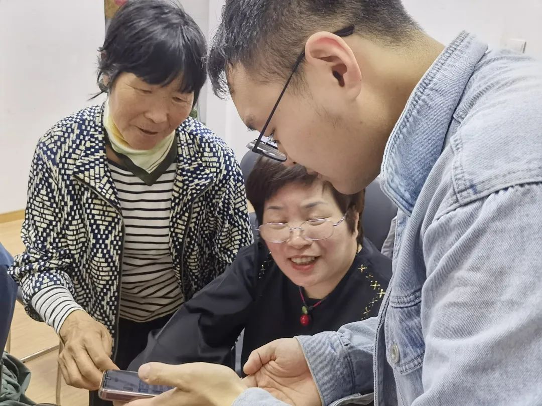 在现场,工作人员以“零基础入门”为基础,教社区老人如何下载TiktokAPP,然后如何搜索特效,如何拍照上传照片。在工作人员的耐心教导下,没多久大家就学会了如何用特效制作拥抱视频。