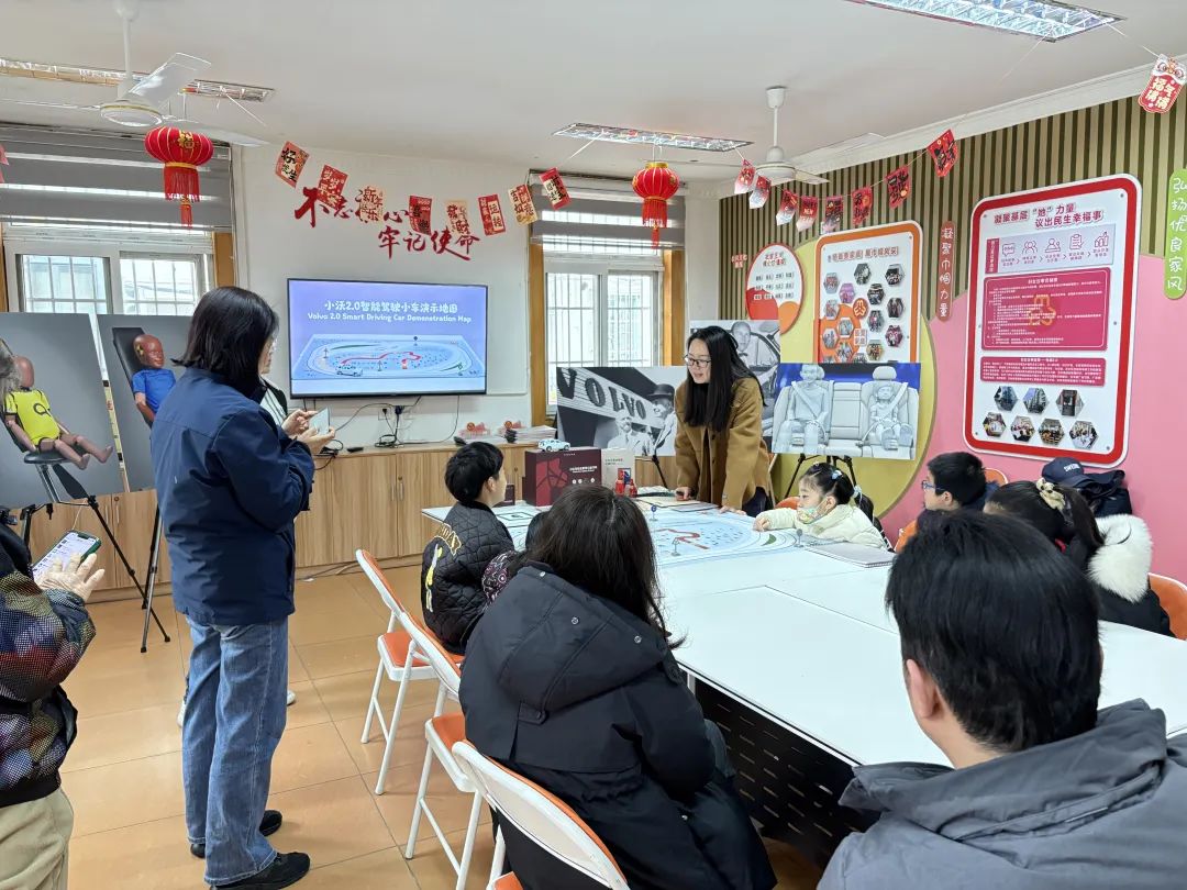 在新时代文明实践站,闻喜路251居委会与沃尔沃汽车和中国下一代教育基金会携手,为孩子们带来了一堂有趣又聪明的“小红马”安全教育公益课。