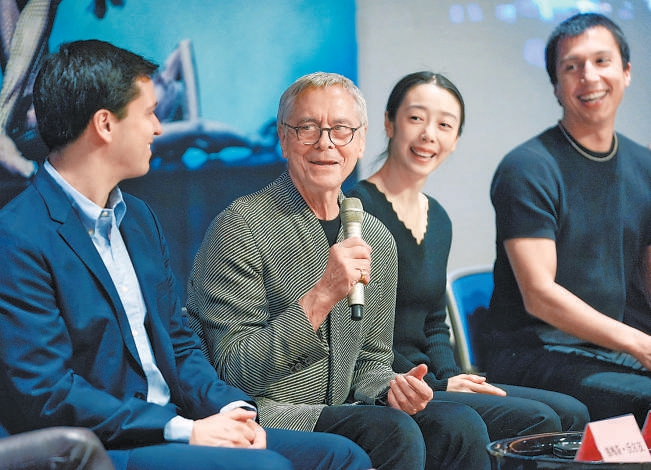 诺伊梅尔(左二)编舞大师来到国家大剧院。 北京日报记者 方非摄