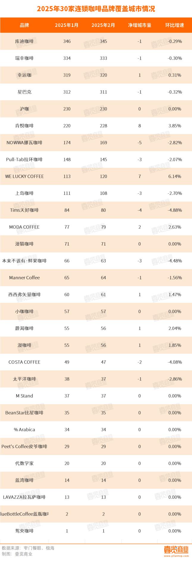 闭店潮扩散。窄门餐眼数据显示,截至2024年12月,咖啡行业近一年新开门店62430家,净增长16986家,即4544家咖啡店消失,中小品牌生存空间进一步缩小。