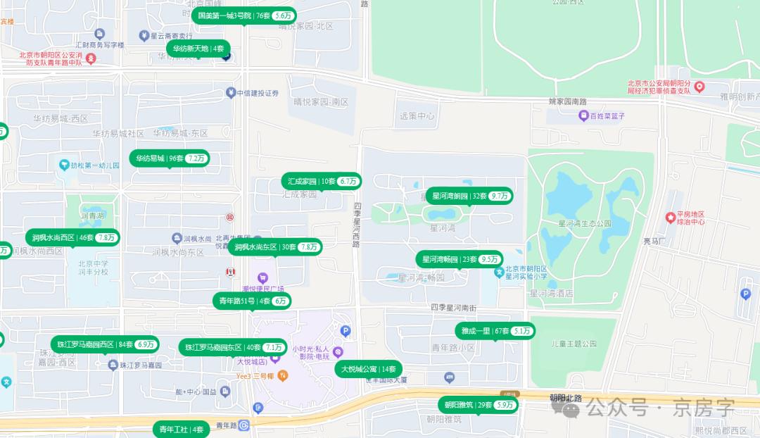 根据绿色中介网站的数据,朝青板块二手房平均挂牌价格为6.6万元/平方米,其中星河湾社区最贵的挂牌价格超过9万元/平方米。新项目未来的定价也值得关注。