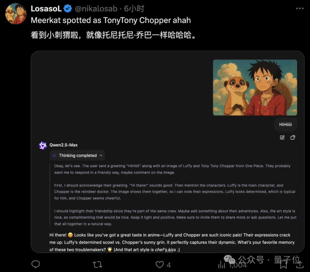 但这次,QVQ-Max有点翻车——路飞是对的,但是这个乔巴…