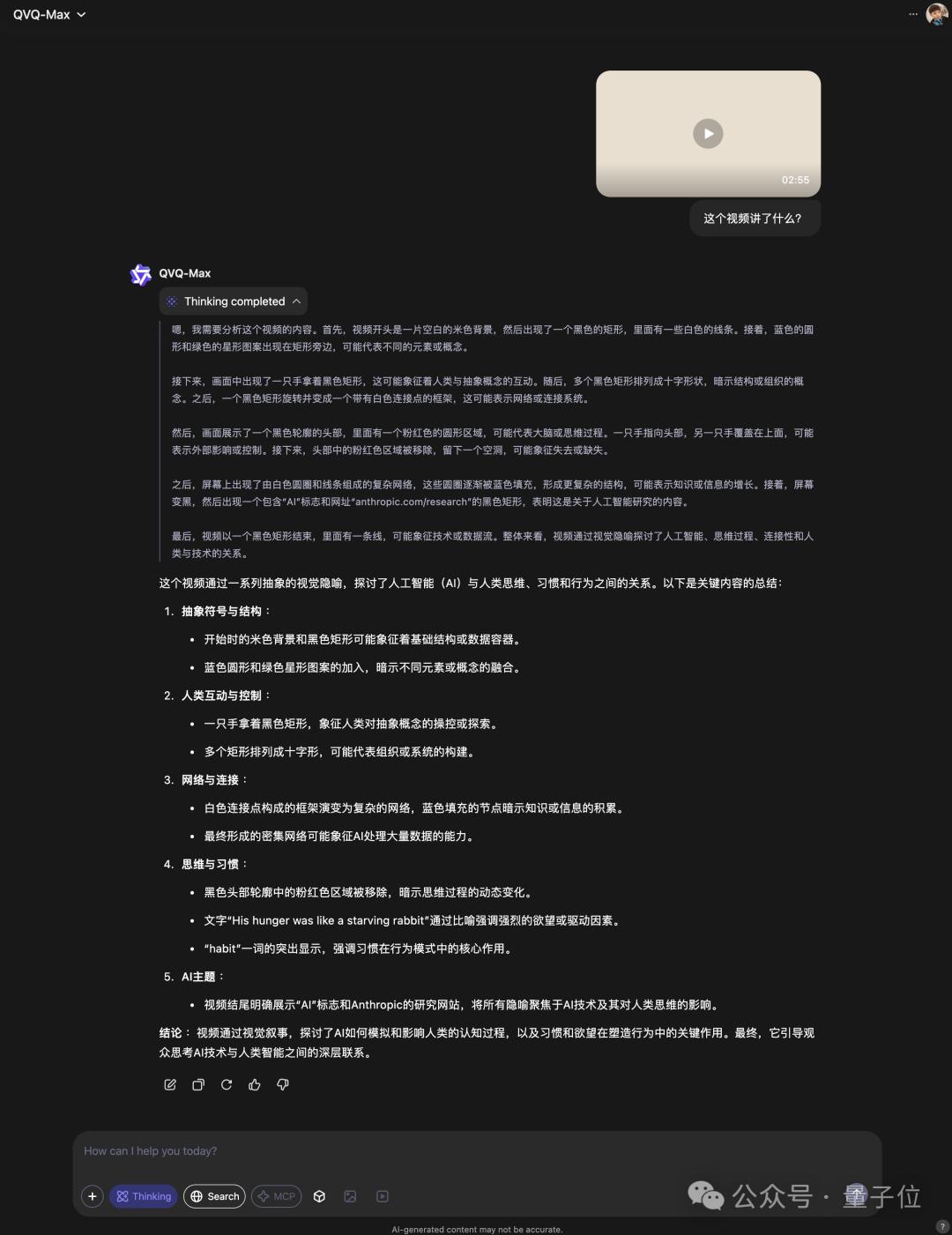 QVQ-Max,视觉推理模型的第一版,可以直接深入思考任何图像或视频。