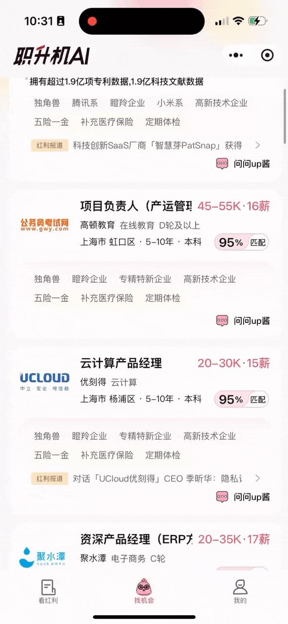 推荐up酱紫的岗位范围,不再局限于单一跑道和企业类型:从工业物联网、智能产品、汽车制造到消费互联网,企业类型从独角兽、瞪羚企业到创业公司,都包括在内。