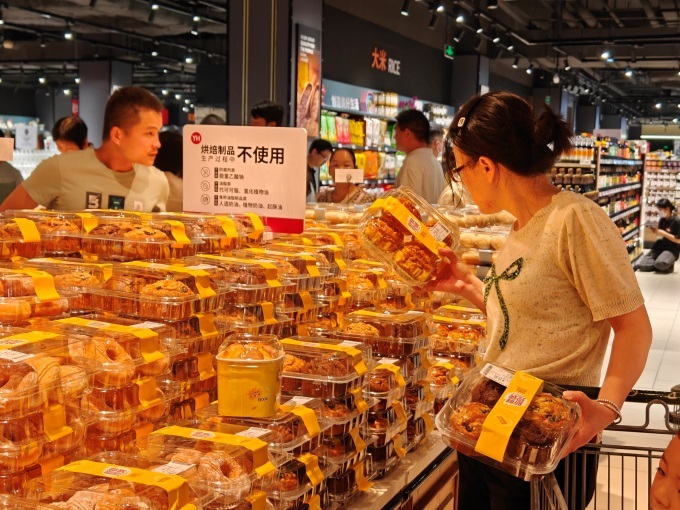 开业当天,烘焙区和熟食摊也成为顾客的“最爱”。桃子、潮汕米糕系列、脆皮烧肉等线上名人产品让人味蕾大开,透明店让顾客直观感受到食品生产过程。“我能看到加工过程,吃得特别舒服。”顾客陈先生对厨房的设计感到惊讶。