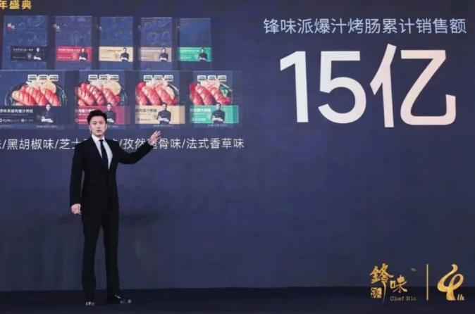 最近,谢霆锋的品牌锋味派庆祝了四周年。在此期间,谢霆锋透露,锋味派爆汁香肠累计销售额达到15亿元,连续三年位居全国第一。
