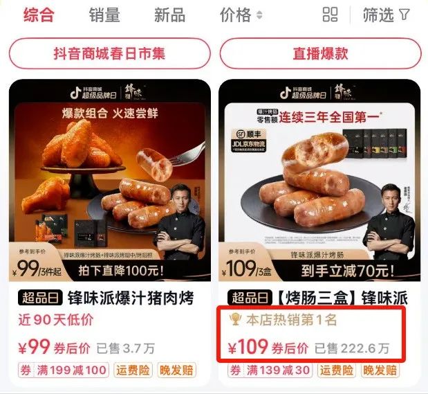 在直播电商和明星创始人知名度的叠加下,锋味派迅速破圈。