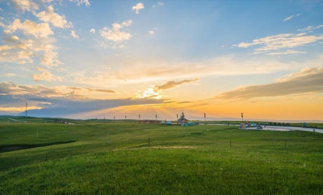 面对太阳,来到康乐草原(空中草原),辽阔的草原与蓝天白云无缝衔接,仿佛一幅巨大的绿色画轴在你眼前缓缓展开。