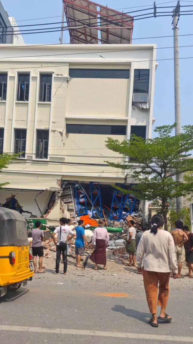 据目前消息,曼德勒,距离震源较近,损失严重,市区老旧房屋塌陷较多,超过震源, 300 建筑物倒塌,包括一所医院和两所学校,曼德勒大学也有建筑物倒塌,发生火灾等次生灾害。19 世纪建造的皇家宫殿外墙有大规模的脱落和塌陷,至少一座清真寺塌陷了。 10 人丧生。