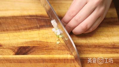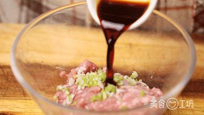1. 葱花剁碎,将葱花、酱油、米酒加入肉沫中,沿一个方向搅拌。