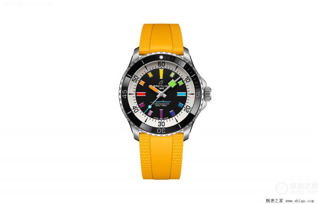 手表评价:沿用了新的超级海洋手表 "Slow Motion" 著名的设计语言,同时增加了耐磨陶瓷嵌入圈和色彩鲜艳的表盘等现代特征。单向旋转陶瓷表圈包含防滑齿轮纹理,即使戴着潜水手套也能精确操作。黑表盘像午夜海面一样深邃,特别是映衬出立体的彩虹夜光时标和宽剑指针的光芒。两面防眩处理后,曲面蓝宝石表镜玻璃表镜像潜艇的窗户一样透明。百年灵在这个超级海洋上完美平衡了专业工具表和时尚单品的双重属性。黄色橡胶表的颜色带非常突出,简直就是阳光少年的视觉感。这款超级海洋作为百年灵最划算的专业潜水表,堪称百年灵。 " 万元潜水表的性能标杆 ",赶快试试把彩虹戴在手里的感觉吧!