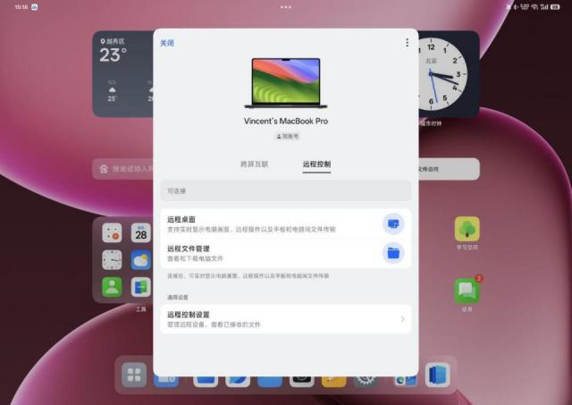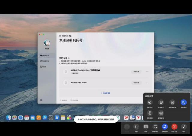 尽管要提到其他品牌会有些奇怪, OPPO Pad 4 Pro 完整的生产力,还需要搭配 macOS 只有设备才能完全释放。正如此前的 OPPO Find N5,它也可以支持和支持 macOS 设备的远程操作,步骤还是和以前一样,需要 O 在互联网上进行一些比较简单的设置,就可以直接用平板电脑远程控制电脑。