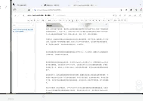 当然,对于安卓平板来说,真正的办公体验问题通常不在于“单一应用”,而在于不同应用和设备的联动能力。在这一点上,OPPO Pad 4 Pro 把此前在 OPPO Find N5 全景式虚拟屏幕功能在系列中移动,与超大屏幕搭配,又是一种不同的分屏观感。