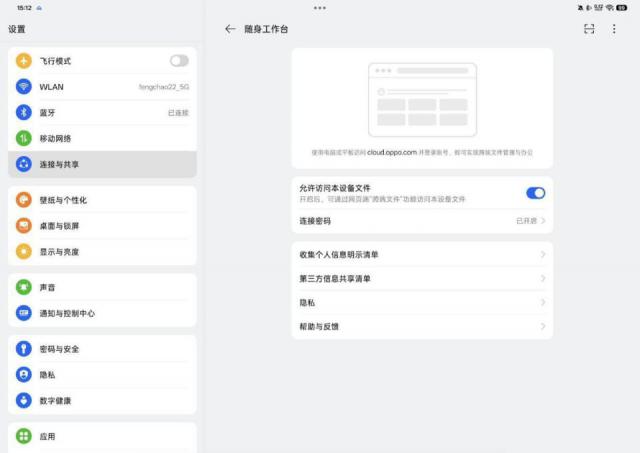 此外,OPPO Pad 4 Pro 也可以在远程操作的同时打开前面提到的全景虚拟屏幕。无论是平板电脑还是电脑到平板电脑,文件传输都是畅通无阻的,跨设备拖动的感觉还是挺好的,好像是这个生态的一部分。