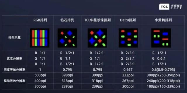 比如华星的 Pearl 珠子排列,天马风车排列,京东六角晶体排列等。