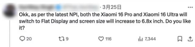除屏幕清晰度满外,最近还有消息称,小米 16 系列整个系统可能会改回纯直屏。的状态。