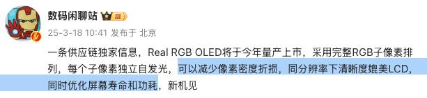 根据 @数码闲聊站 的爆料,华星的 Real RGB OLED,已在路上了。