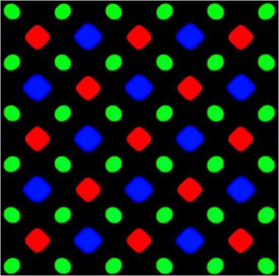 从之前的图片可以看出,钻石排列的原理相当简单,就是增加红蓝像素的面积,变相可以减少红蓝像素的通电,从而延长使用寿命。
